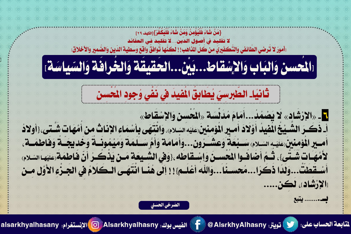 للمحسن إطلاقاً وأن هذه القضية أثيرت في القرن الثامن الهجري من قبل الراوندي ومن